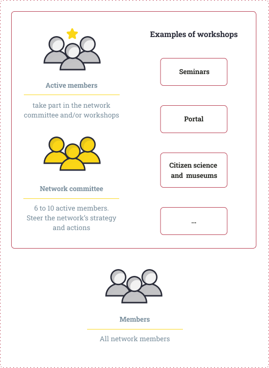 - As an active member: taking part in the network committee and/or thematic working groups (workshops).